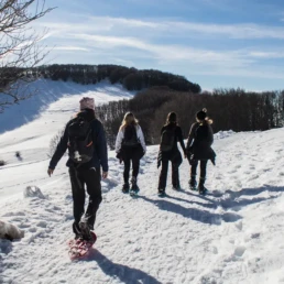 We organize guided snowshoeing excursions in some of the most scenic areas of the Apennines between Umbria and the Marche, including: